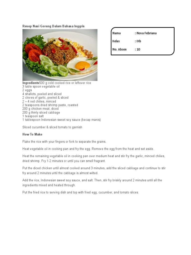 1 sendok makan minyak goreng. Menggunakan bumbu instant juga tidak baik jika terlalu sering. 100 gram cumi, potong cincin. Resep nasi goreng jawa merupakan salah satu menu makanan rumahan yang jadi andalan di kala para ratu dapur sedang tak punya waktu memasak atau tak punya bahan masakan di kulkas. Beberapa waktu terakhir, kornet telah menjadi bahan utama dalam pembuatan nasi goreng. Bisa juga menjadi pilihan bekal sarapan enak untuk anak. Berikut ini 3 resep nasi goreng tradisional rekomendasi detikfood yang cocok buat sarapan sedap bareng keluarga. Game nasi goreng besutan own games merupakan game memasak dengan meracik bahan makanan agar menjadi masakan yang lezat, terutama nasi goreng. Resep nasi goreng ala kampung ini sangat mudah dan cepat dalam pembuatannya. Di sini pemain hanya perlu mencari resep untuk membuat nasi goreng dengan berbagai aneka, seperti contohnya nasi goreng seafood, nasi goreng sosis, nasi goreng mawut, nasi goreng hongkong dan banyak lagi. Tidak terlalu rumit dalam membuat nasi goreng. Sebenarnya sepiring nasi goreng hanya memerlukan bumbu 1siung bawang putih, 1 butir bawang merah, garam, gula, dan merice. Coba resep bubur ayam gampang dan enak.